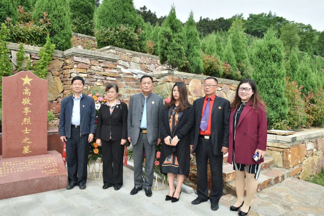 2019年5月8日,中国第十一届“红色工程·感恩行动”全国行走进新县(感恩共产党、感恩毛主席、感恩老红军、感恩卫国老兵)、庆祝中华人民共和国成立70周年、纪念习主席红色“三好”题词5周年暨纪念高敬亭将军牺牲80周年、“牢记为人民服务宗旨、弘扬大别山革命精神”座谈会在新县举行。在高敬亭烈士之墓前合影。左一至左五:百岁老红军、原成都军区政委万海峰上将之子,原总参谋部四部部长万晓援少将;原中央党史研究室宣教局副巡视员邢济萍;老红军、李德生上将之子、北京于若木慈善基金会秘书长李和平;洪虎省长孙女洪玲;原武警武汉指挥学校副校长、红色文化研究院执行院长姜文华。