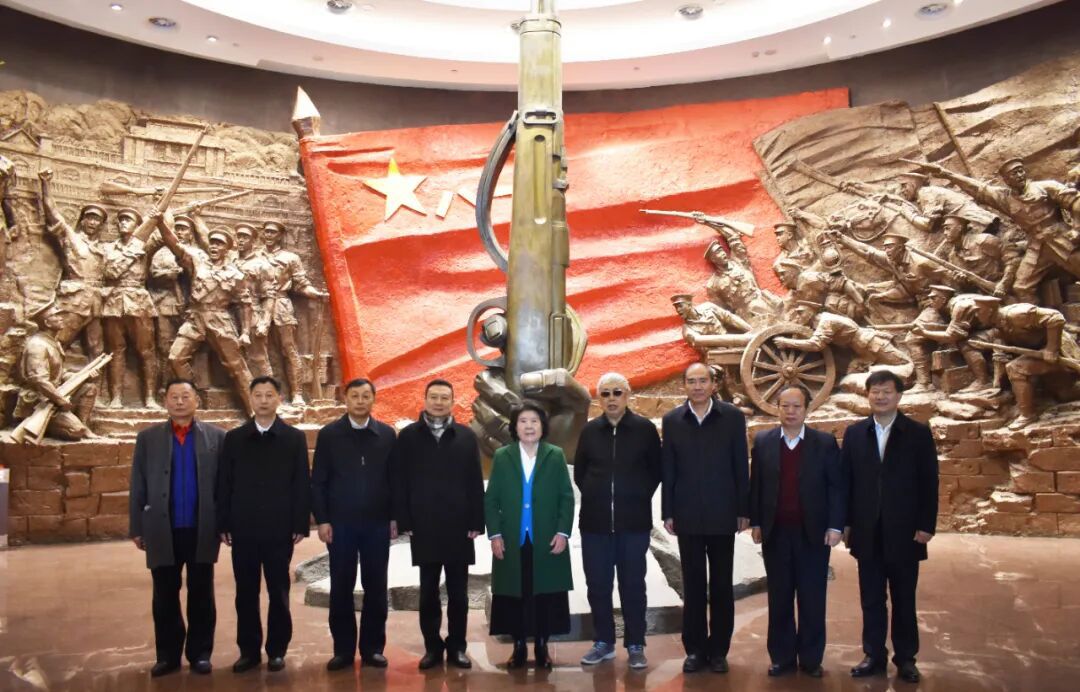 2019年12月7日上午,“传红色基因、承革命薪火”——江西百万青年“红色跑神州”定向赛(南昌站)在南昌八一广场鸣枪开跑。这是参观南昌八一起义纪念馆。自左至右:陈毅元帅之子、中国人民对外友好协会原会长陈昊苏,红色文化研究院执行院长、原武警武汉指挥学校副校长姜文华,朱德元帅外孙、原总参某部副局长刘武大校,江西省委原书记、中共中央统战部原副部长(正部长级)万绍芬。