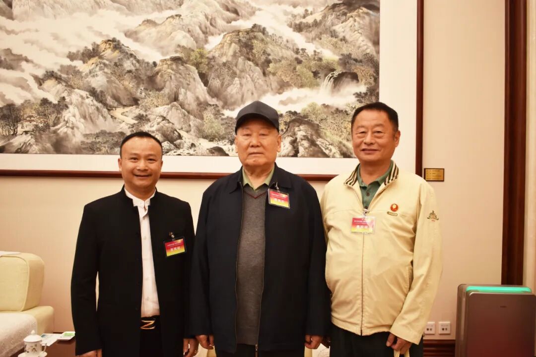 2019年7月24日,原武警武汉指挥学校副校长、红色文化研究院执行院长、“红色工程·感恩行动”全国行组委会主任姜文华,在北京看望老红军、原成都军区政委万海峰上将。这是万海峰老将军同姜文华(左),万海峰首长的秘书孙德阁大校(右)在一起。