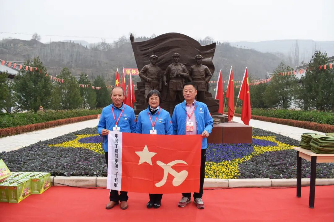 2020年11月15日上午,喜迎中国共产党成立100周年、纪念红二十五军长征胜利85周年暨中国长征·汽车(新能源)拉力赛泾川站发车仪式在甘肃省平凉市泾川县吴焕先烈士纪念馆举行。左起:红二十五军政委、鄂豫陕省委代理书记吴焕先之侄吴世友;全国政协原副主席、红二十五军军长程子华之女,昆明市原副市长林爽爽;红二十五军长征·红色文化传承总策划、红色文化研究院执行院长姜文华。