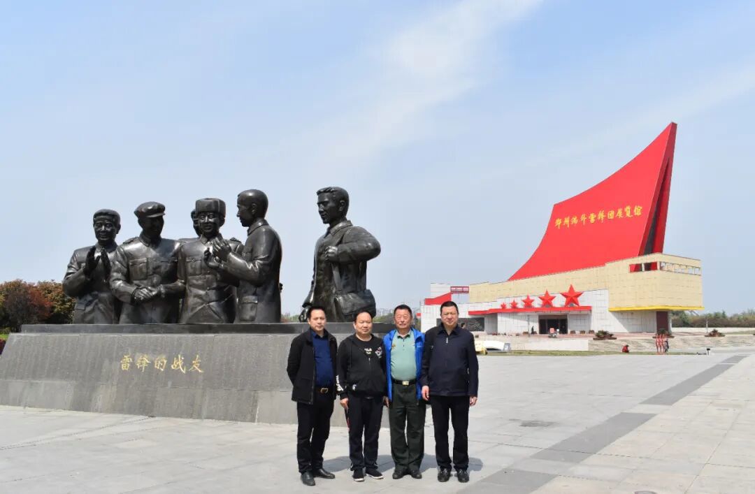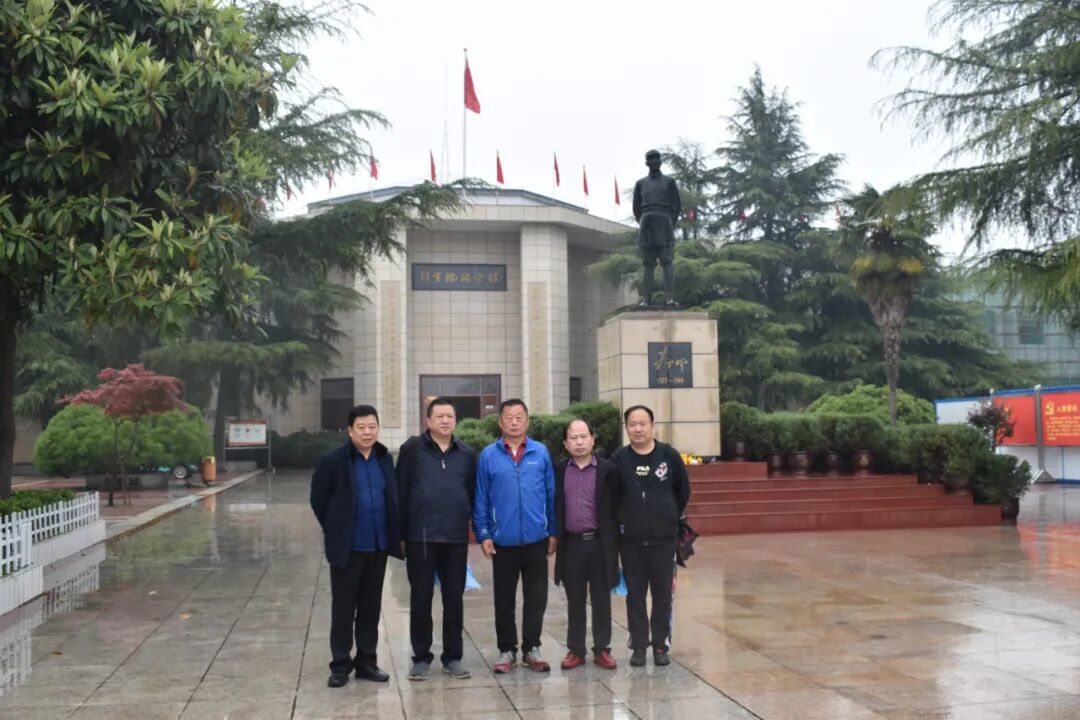 2021年4月7日,中国第十九届“红色工程•感恩行动”(感恩共产党、感恩毛主席、感恩老红军、感恩卫国老兵)全国行走进镇平县——庆祝中国共产党成立100周年暨参观河南省南阳市镇平县彭雪枫纪念馆。左二起:孙德阁大校、姜文华院长、王有雪、李勇。