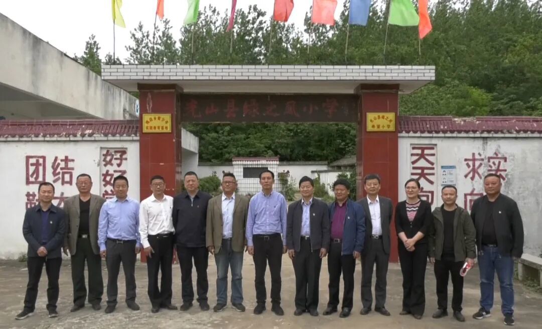 2019年5月7日,中国第十一届“红色工程·感恩行动”全国行走进光山县(感恩共产党、感恩毛主席、感恩老红军、感恩卫国老兵)、庆祝中华人民共和国成立70周年、纪念习主席红色“三好”题词5周年暨万海峰老将军亲属回家乡河南省信阳市光山县参观考察。在光山县槐店乡王河村绿之风小学校门前合影。右六为万晓援少将,左五为万海峰老将军秘书孙德阁大校,左二为姜文华院长,右七为光山县委副书记许远良。