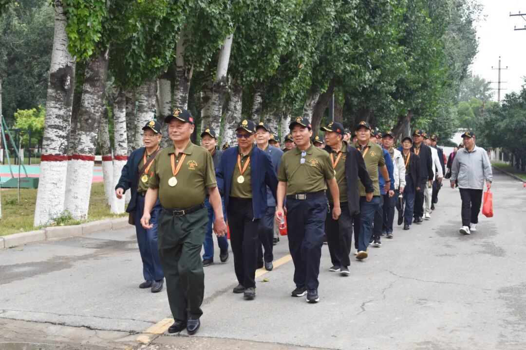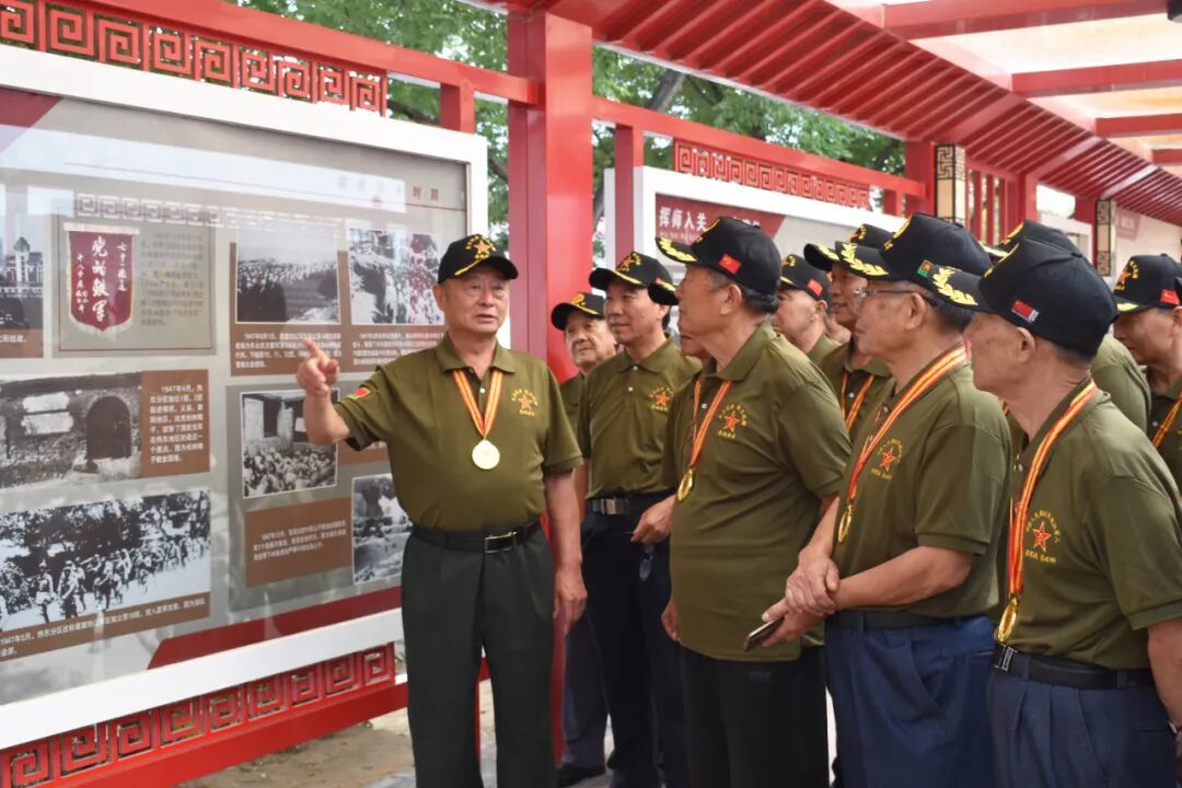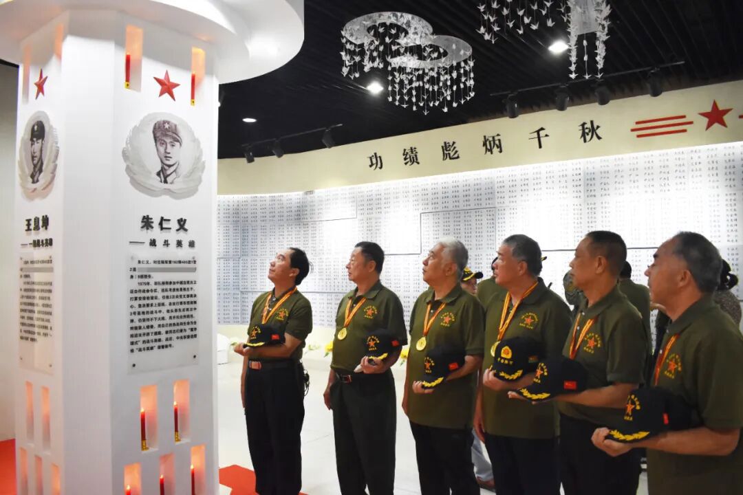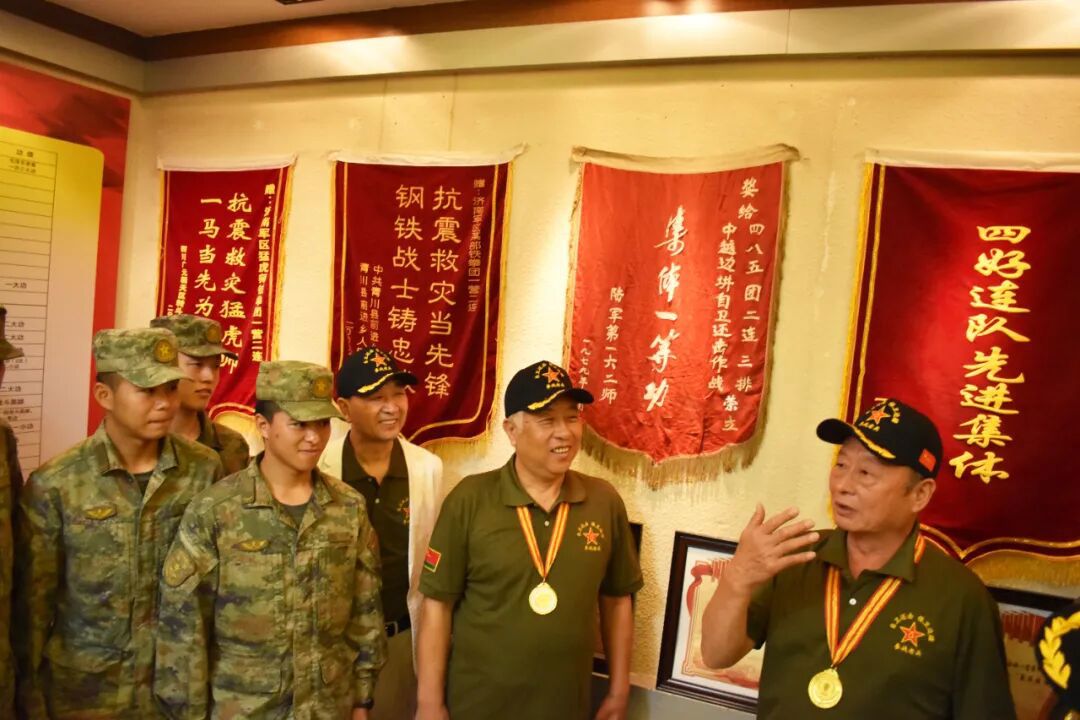 2023年9月25日上午,猛虎师铁拳团二连老兵持续走进军营,参观旅史馆、猛虎战墙和古城墙遗址等地,传承红色血脉,共叙军旅情,共筑强军梦。老战友们向战斗英雄朱仁义致敬。左二为姜文华院长。