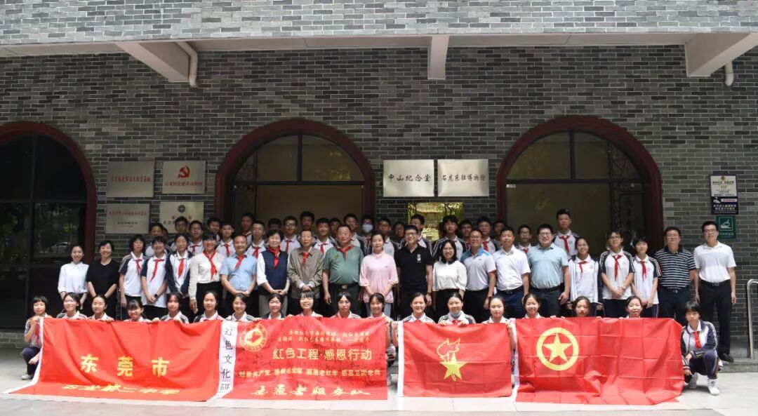2021年4月23日,中国第十九届“红色工程•感恩行动”(感恩共产党、感恩毛主席、感恩老红军、感恩卫国老兵)全国行走进东莞——庆祝中国共产党成立100周年暨到广东省东莞市石龙镇石龙东征博物馆参观学习。这是周恩来总理侄子周秉钧、侄媳刘军鹰,韩银山主任,姜文华院长同中学生们合影。