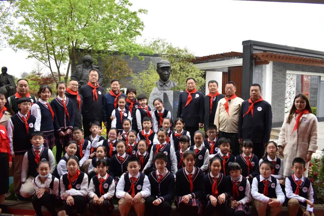 2021年4月2日上午,中国第十九届“红色工程•感恩行动”(感恩共产党、感恩毛主席、感恩老红军、感恩卫国老兵)全国行走进河南郑州——庆祝中国共产党成立100周年暨纪念英雄 丰碑永恒——高敬亭将军纪念像在郑州河南福寿园揭幕。高敬亭将军亲属高凤英(右六)、高戟(右九);老红军、原中共中央副主席李德生之子,北京市于若木慈善基金会理事长李和平(右五);102岁老红军、原成都军区政委万海峰上将之子,原总参谋部四部部长万晓援少将(右七);郑州市委原副书记邵其政;万海峰上将秘书孙德阁大校(右二);老红军、原北京军区副司令肖选进之子,北京新四军暨华中抗日根据地研究会副会长肖占大校(右八);原武警武汉指挥学校副校长、中国萧军研究会副会长兼红色文化研究院执行院长、“红色工程·感恩行动”全国行走进百城组委会主任姜文华(右三);北京新四军研究会副秘书长、安徽新四军研究会副会长张怀旗(右四)一行和小学生们一起瞻仰高敬亭将军纪念像并合影。