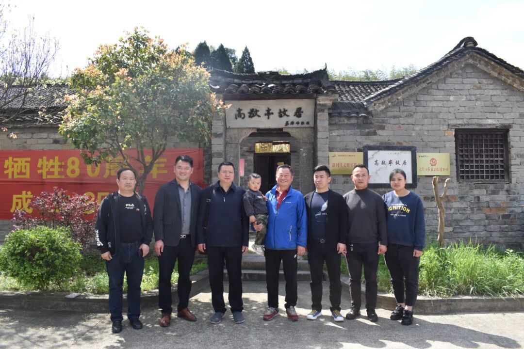 2021年4月8日,中国第十九届“红色工程•感恩行动”(感恩共产党、感恩毛主席、感恩老红军、感恩卫国老兵)全国行走进新县——庆祝中国共产党成立100周年暨参观河南省信阳市新县高敬亭故居。左起:李勇、陈平、孙德阁大校、黄俊淇、姜文华院长、黄超、黄炎涛、代青玉。