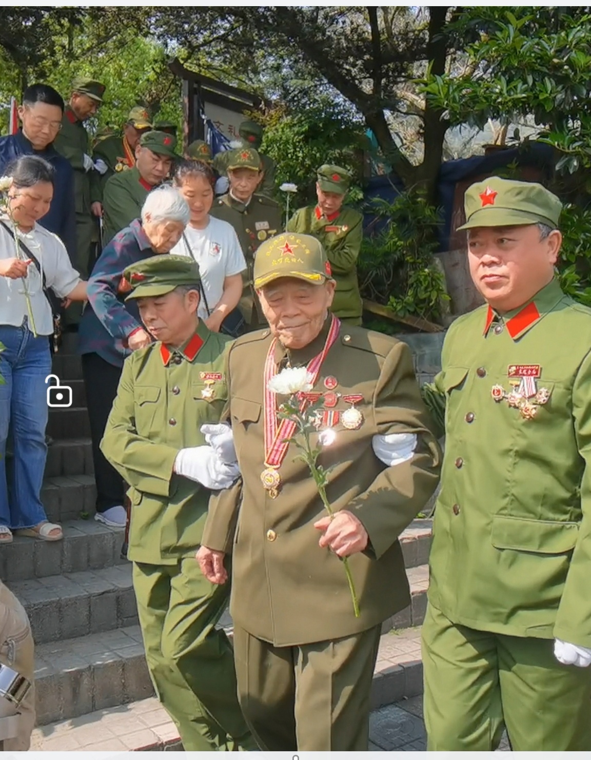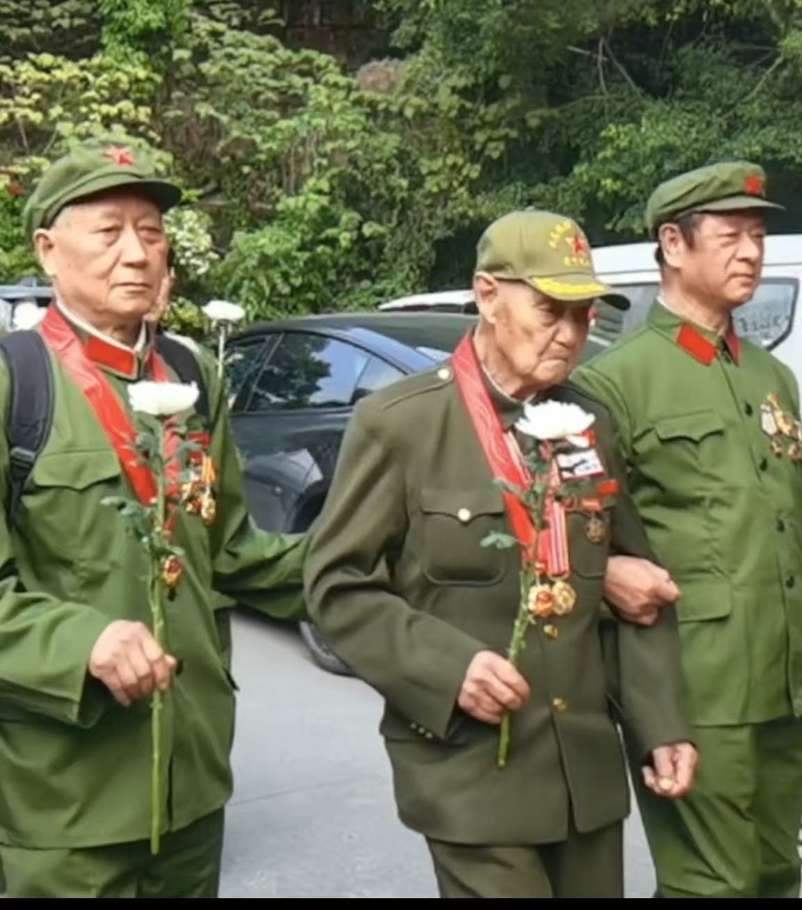 参加活动的志愿军老战士有:陈明兴101岁、肖先炳95岁、郑克明94岁,唐尚熙93岁,黄岭93岁,何日可92岁,吴志俊90岁,朱小珍88岁等;参会的还有志愿军烈士后代:杨庆秀。志愿军后代:谢安东,肖丰,李文模,郑虹梅,蒋向红,王小羲,冷哓峰,冷哓惠,张向芳,李会会,杨庆伟,黄丹,何曰可儿女等。 孙子辈谢雨君。中印自卫反击战、两弹一星、援越抗美、铁道兵、中越自卫反击战等各个时期的退役军人也出席了活动,用初心传承英烈精神,用敬意告慰英雄忠魂。